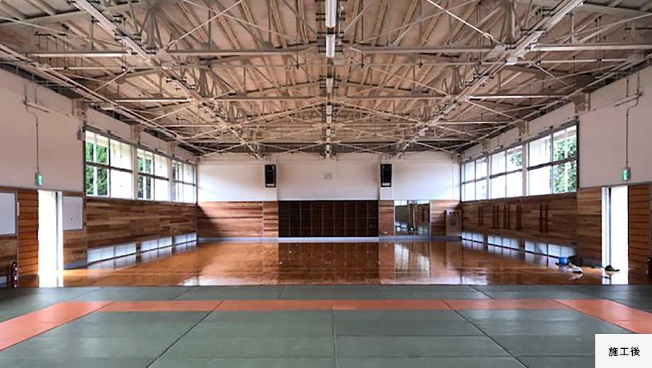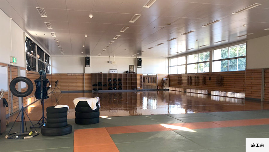 格技場の安全性を高めるため、天井を撤去し、内装の改修を行いました。